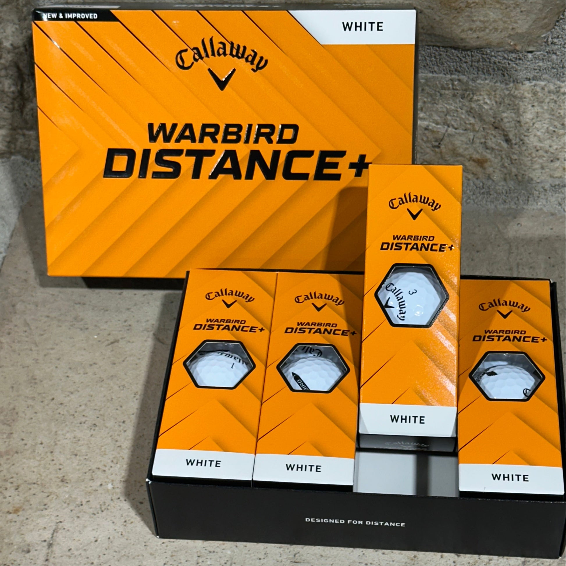 5. 1 Dozen White Distance+ Golf Balls w/ the Arrowhead Land Company Logo.