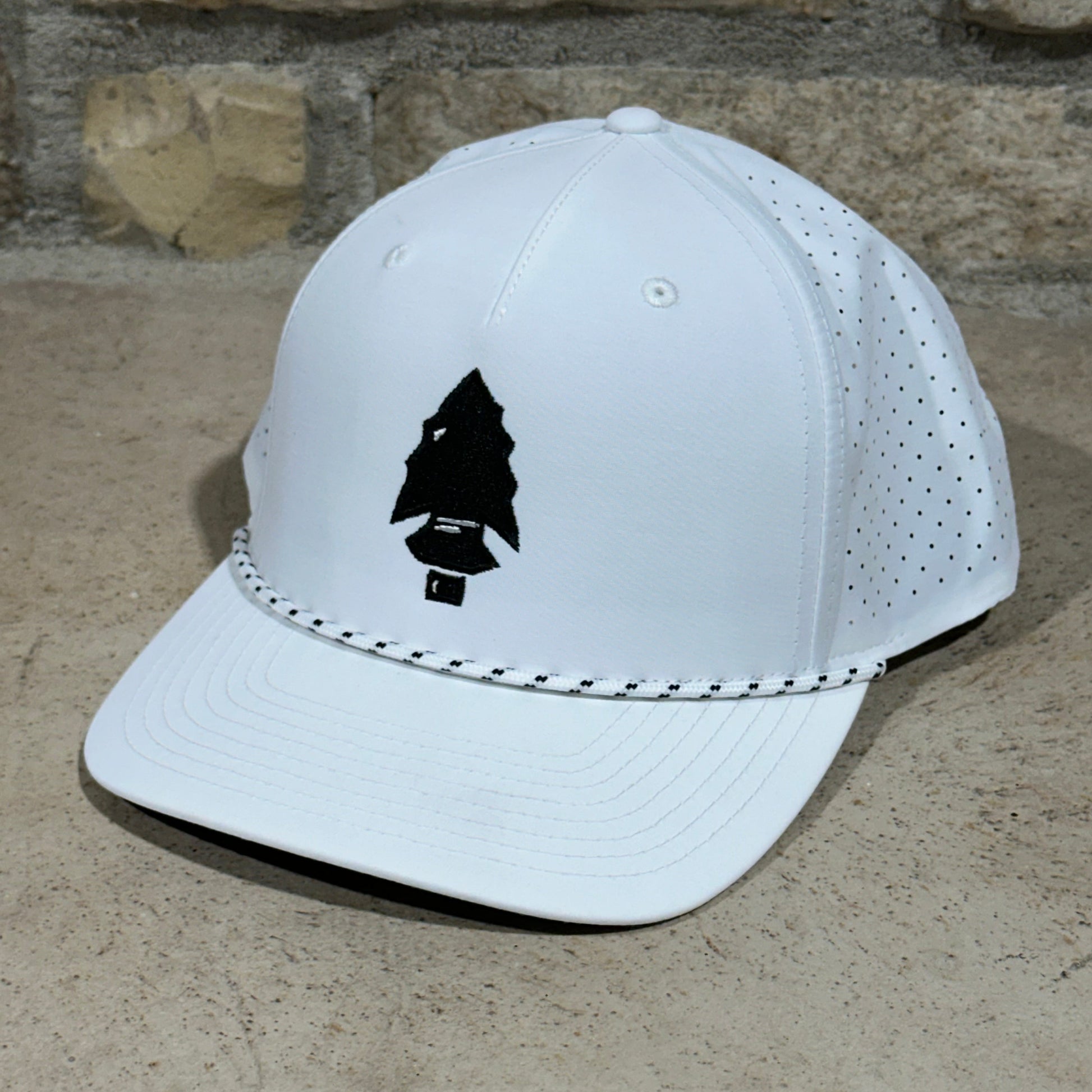 3. White & Black Rope w/ Black Embroidered Arrowhead Patch. Richardson 355 Performance.